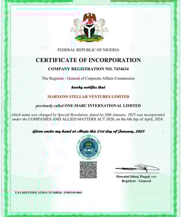 Marxons Stellar Ventures Limited is a multinational trading enterprise with headquarters in Nigeria and strategic operational centers in China (MarkShen International Import & Export Company Ltd) and the USA (Marxons LLC). Since our establishment in 2018, we have executed transactions valued at over $100 million across diverse commodity sectors, establishing ourselves as a reliable bridge between African resources and Asian manufacturing markets.