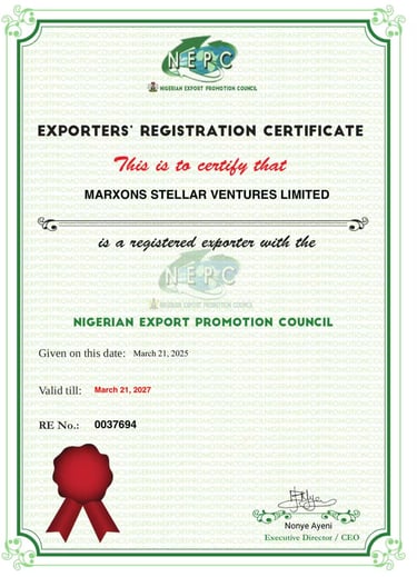"Reliable, ethical, and efficient. Marxons has been our trusted supplier of Nigerian agricultural commodities for three consecutive years with zero quality issues."
